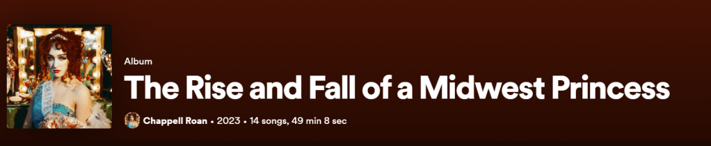 Chappell Roan, I would like to sincerely apologize for not giving you a chance back in March when I literally attended Olivia Rodrigo’s SOUR tour when you were the opener. I can admit my wrongs! This is why it’s important to come back to music you’ve already given an initial listen. There are some hits on here and I am very excited to see what else she produces in the future. Oh! And I will be seeing her at Lollapalooza because, well, redemption.
