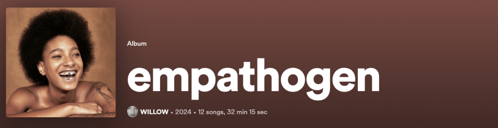 One of the most talented artists of our generation has blessed us with another album… Willow is incredibly underrated, likely because her contemporary style has a bit too much je ne sais quoi for the average everyday music listener. Not me though! Willow’s album release in 2022, ‘<COPINGMECHANISM>’ seriously changed my life, but honestly all of her projects are uniquely well-done. This is exactly the type of effort, exploration, and execution that I want to see from all the nepo babies.
